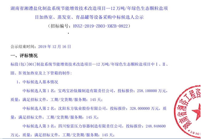 2、湖南省湘澧鹽化制鹽系統(tǒng)節(jié)能增效技術(shù)改造項目—12萬噸/年綠色生態(tài)顆粒鹽項目加熱室、蒸發(fā)室、育晶罐等設(shè)備采購