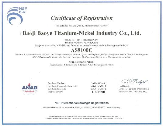 寶雞寶冶鈦鎳制造公司取得航空航天質(zhì)量管理認(rèn)證